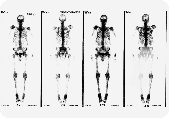 Для оценки распространённости процесса пациент прошёл дополнительное обследование, включая сцинтиграфию костей скелета. Признаков отдалённого метастазирования выявлено не было, что позволило рассматривать радикальное лечение как обоснованную и своевременную тактику
